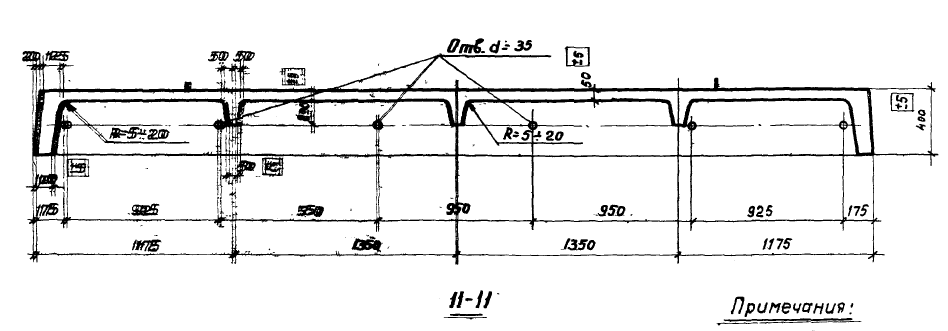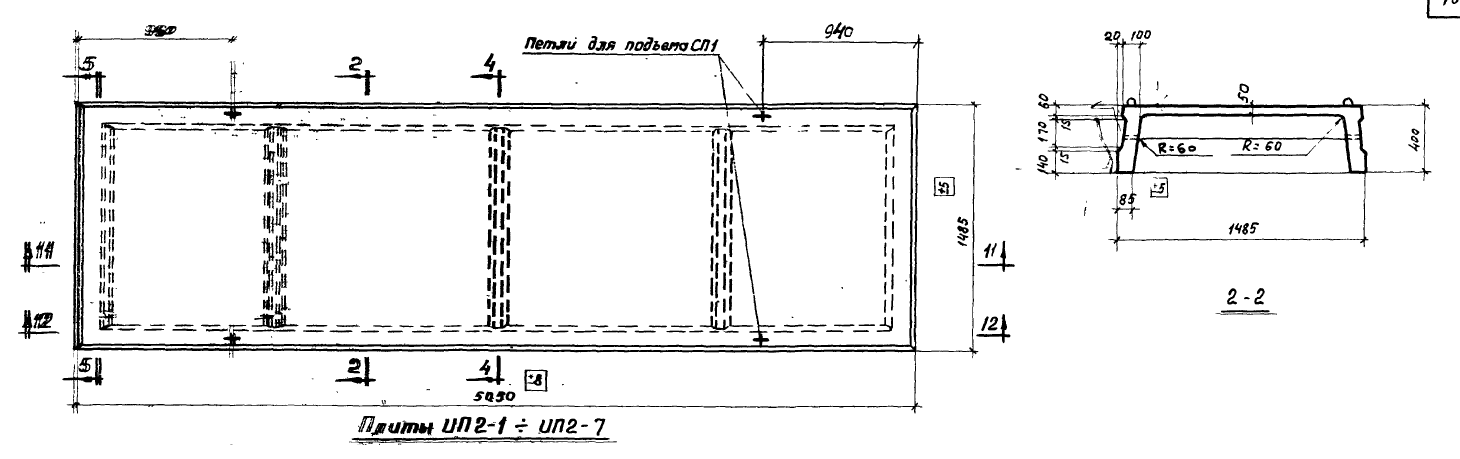Проверка полки ребристой плиты выполнялась для сечения с характерным типами армирования (в середине пролета полки и на опорах полки).