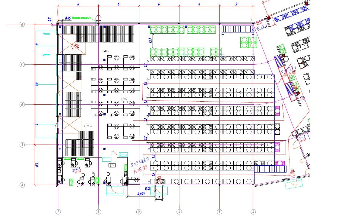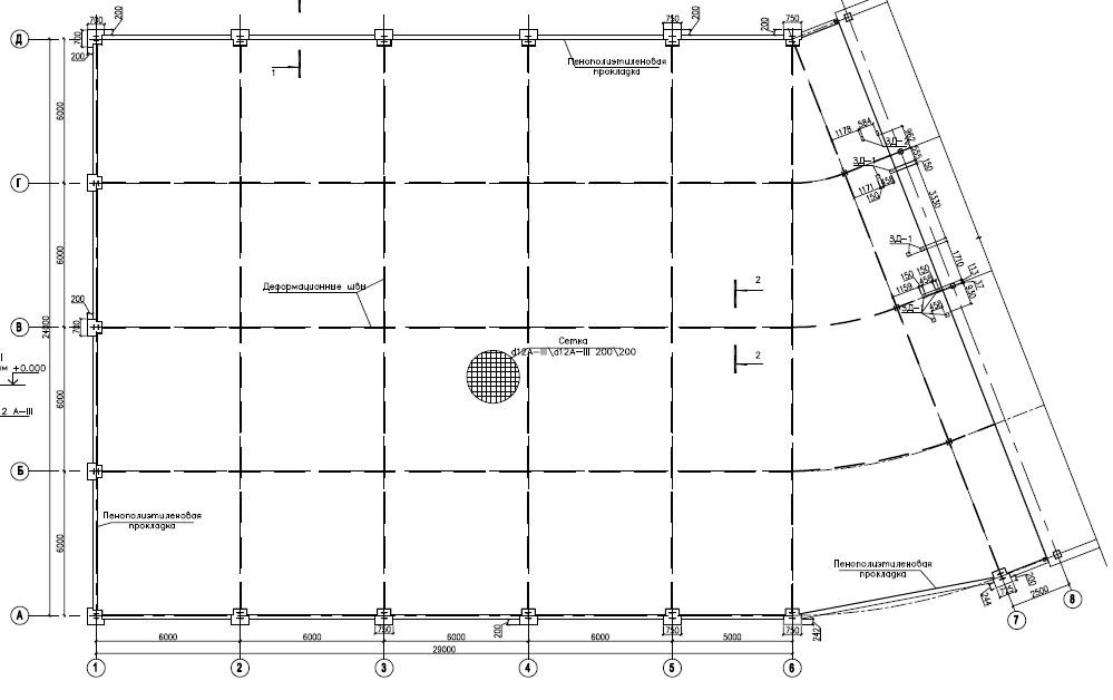 Выполнен поверочный расчет для определения несущей способности плиты пола в осях 1-7/А-Д с учетом переоборудования складских площадей.
