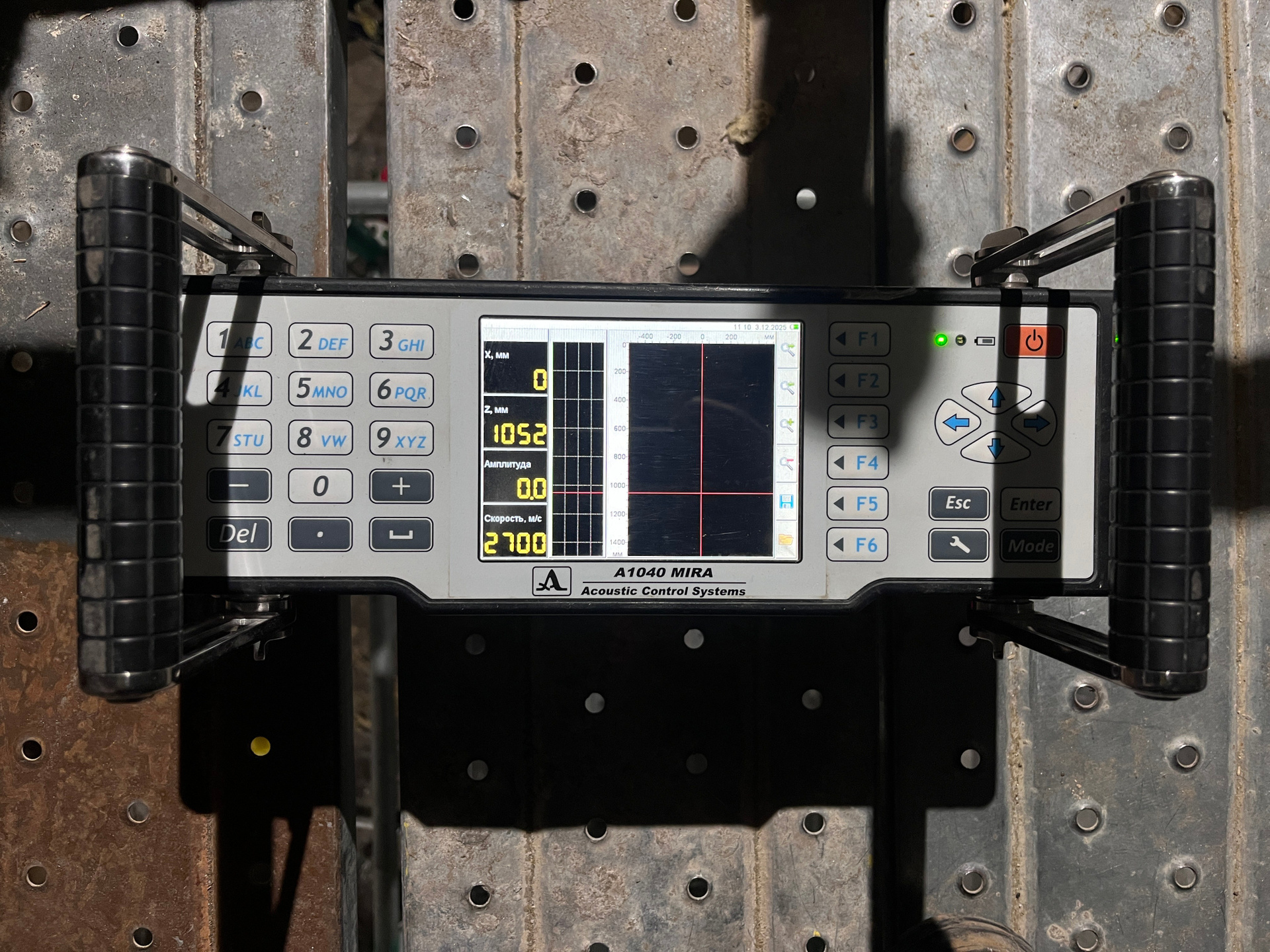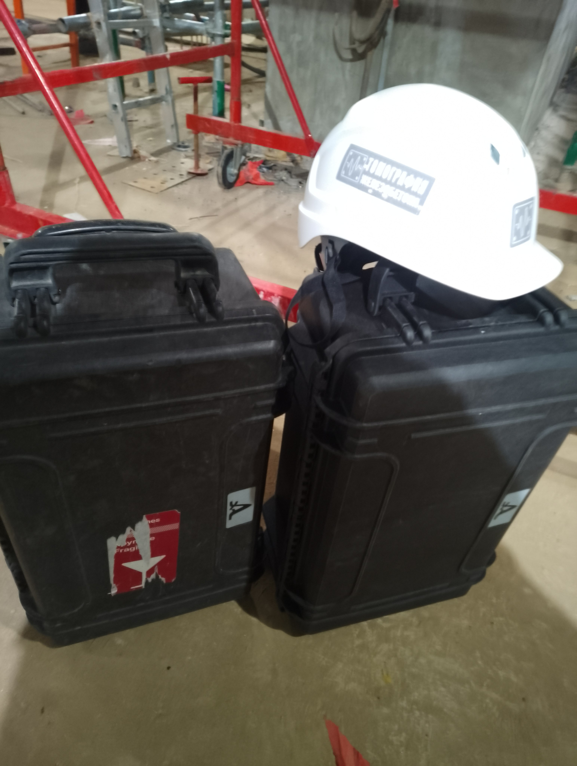 Фактическая толщина конструкций колонн составила 1050 и 1200 мм, соответственно. Для получения информации о внутренней структуре бетона конструкций колонн, выполнялось их обследование ультразвуковыми томографами A1040Mira (производитель ООО «Акустические Контрольные Системы»).
